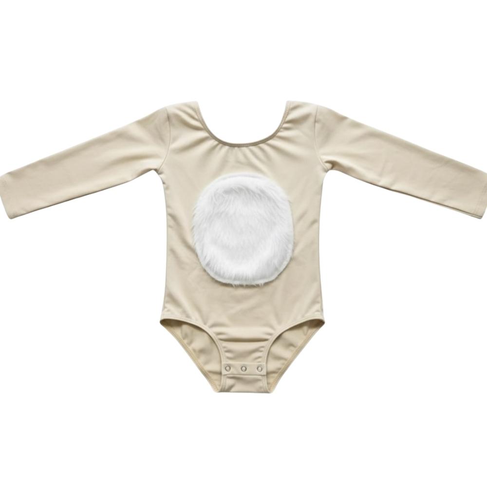 בגד גוף במבי מעוצב לילדות עם טלאי פרווה רך בחזית, המעניק מראה מתוק, טבעי וייחודי.