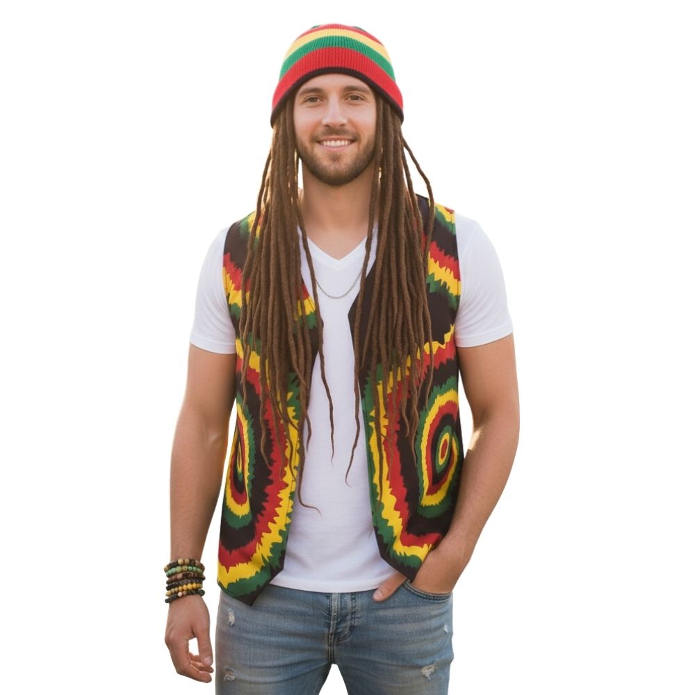 - כובע רסטה (טאם) עם דרדלוקס: אביזר חובה לכל תחפושת בוב מארלי.
