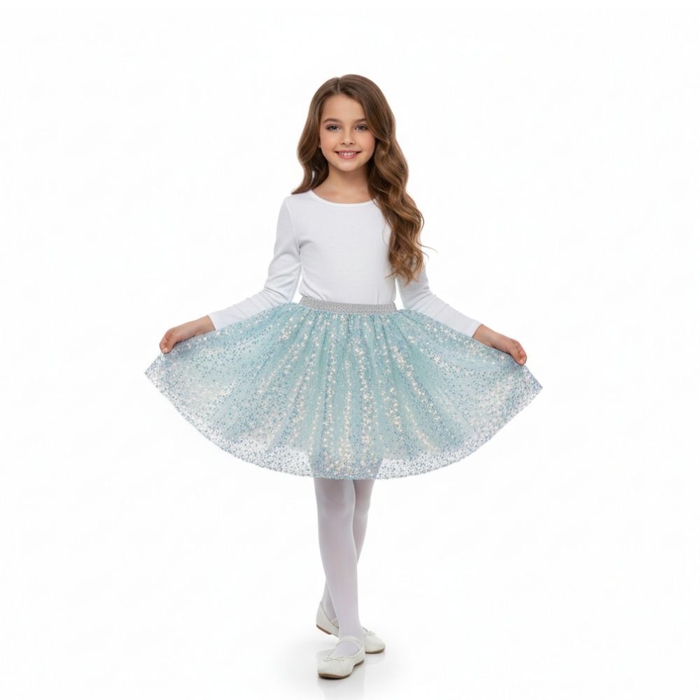 - חצאית פיות מנצנצת לבן תכלת