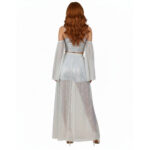 החצאית כוללת שסעים אלגנטיים בצדדים וחגורה כסופה שמדגישה את המותניים ויוצרת לוק נשי, יוקרתי ומלא ברק.
