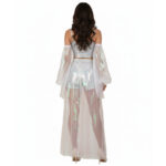 עיצוב אלגנטי עם שסעים שמוסיפים תנועה ונשיות, בשילוב חגורה כסופה שמדגישה את המותן ונותנת טאץ’ נוצץ.