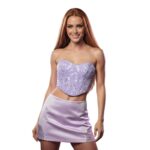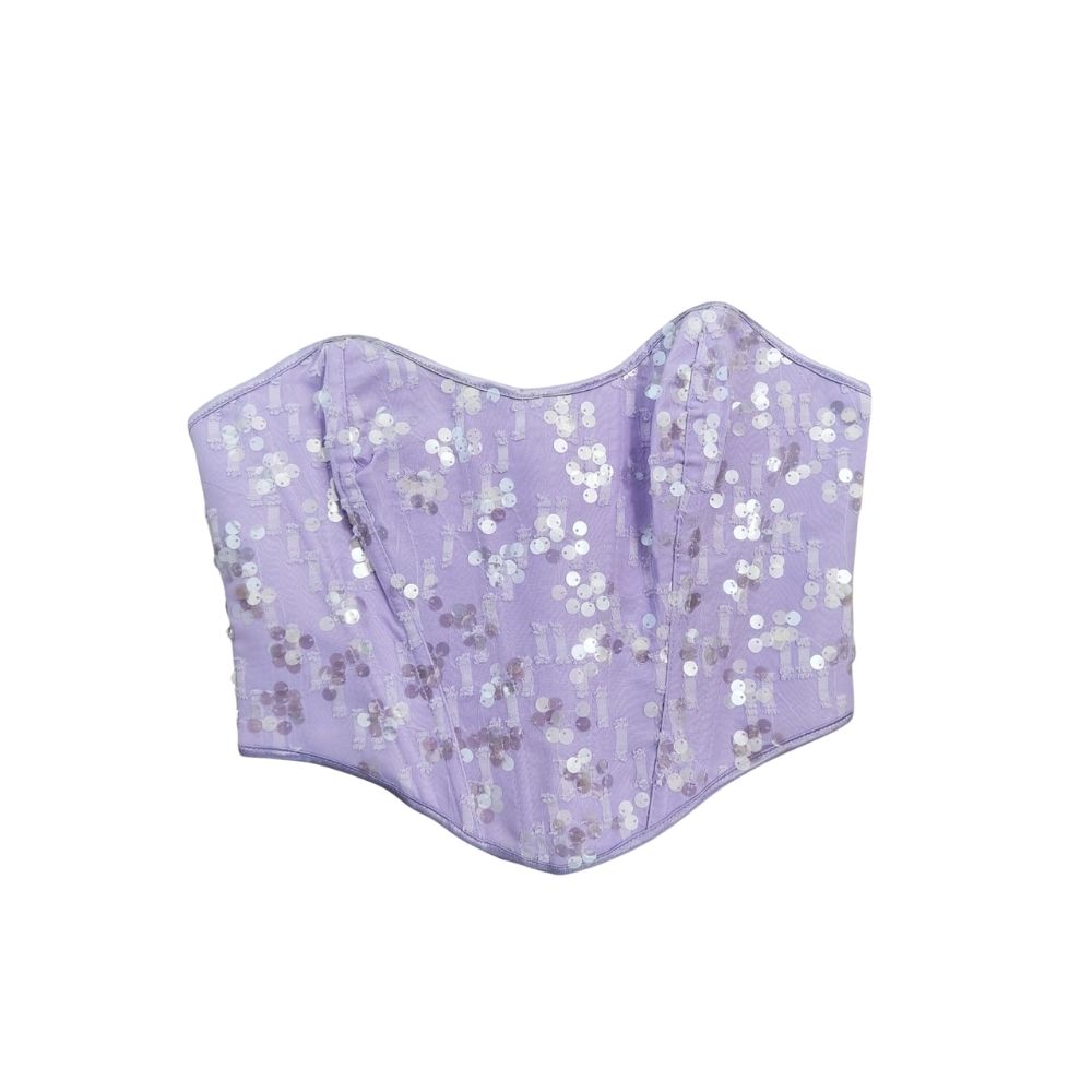 מחוך פייטים סגול מרהיב שמעניק לוק נוצץ, נשי ומחמיא לכל מסיבה, אירוע או תחפושת.