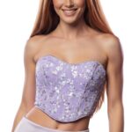 המחוך בנוי בעיצוב מחמיא עם עצמות תמיכה, סגירה אחורית בלייסים להתאמה מושלמת לגוף, ופייטים מנצנצים שיוצרים אפקט WOW מכל זווית.