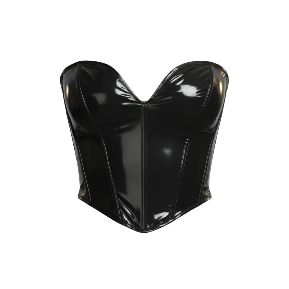 מחוך וניל שחור מבריק, איכותי ומעוצב, מחטב את הגוף ומדגיש את המראה הנשי בצורה אלגנטית ומפתה.