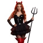 להשלמת טוטאל לוק: כפפות רשת, חצאית טול שחורה, קלשון שטן או מגפיים גבוהים.