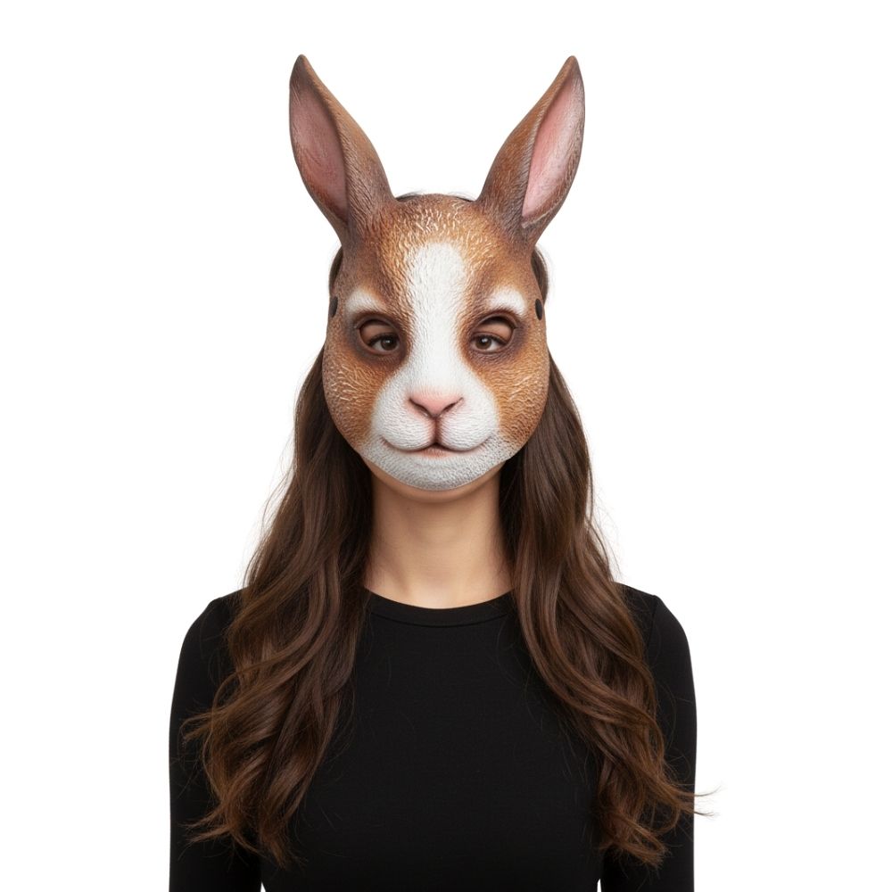 מסכת פנים בעיצוב מושקע של ארנב חמוד – פרטים עדינים שמוסיפים עומק וחיים לדמות.