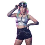 הוסיפי את טופ השרשראות לעגלה הוסיפי חגורת מותן שרשראות ,מכנסון פייטים שחור , גרביון רשת כוכבים , משקפי סקי , כפפות רשת חתוכות , נצנצים , מדבקות , פאה מדליקה ותני לעצמך להרגיש כמו כוכבת אמיתית בכל אירוע.
