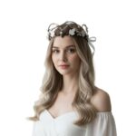 נזר עלים לבנים עם תליון אבן נוצצת במרכז הוא תכשיט שיער מלא קסם, שמשלב בין טוהר, רכות ונוכחות זוהרת.