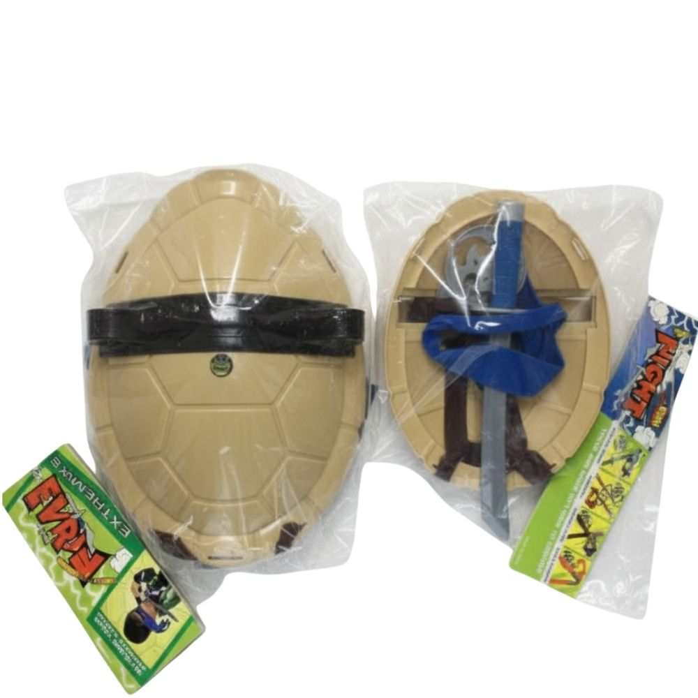 🟦 דגם כחול שריון ירוק– כולל חרב נינג'ה ארוכה, 2 כוכבי נינג'ה, שריון ומסכת עיניים כחולה