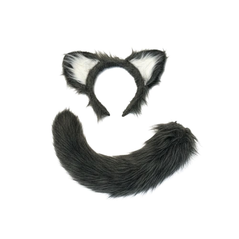סט לתחפושת זאב 🐺אוזני זאב + זנב עבה וקצר אפור פרוותי עם חיבור קליפס נוח