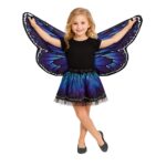 כנפיים גדולות בגווני כחול סגול עם הדפס פרפר עשיר שמעניק אפקט WOW מכל זווית.