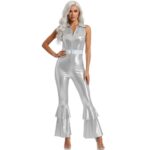 אוברול דיסקו כסף מטאלי לנשים 💿✨