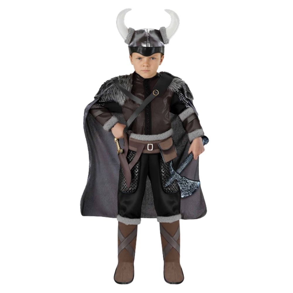 תחפושת ויקינג מרשימה ועוצמתית לילדים, בעיצוב עשיר ודרמטי שמכניס כל ילד לעולם הלוחמים הנורדים.