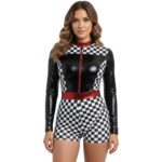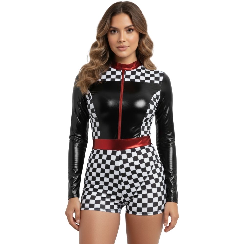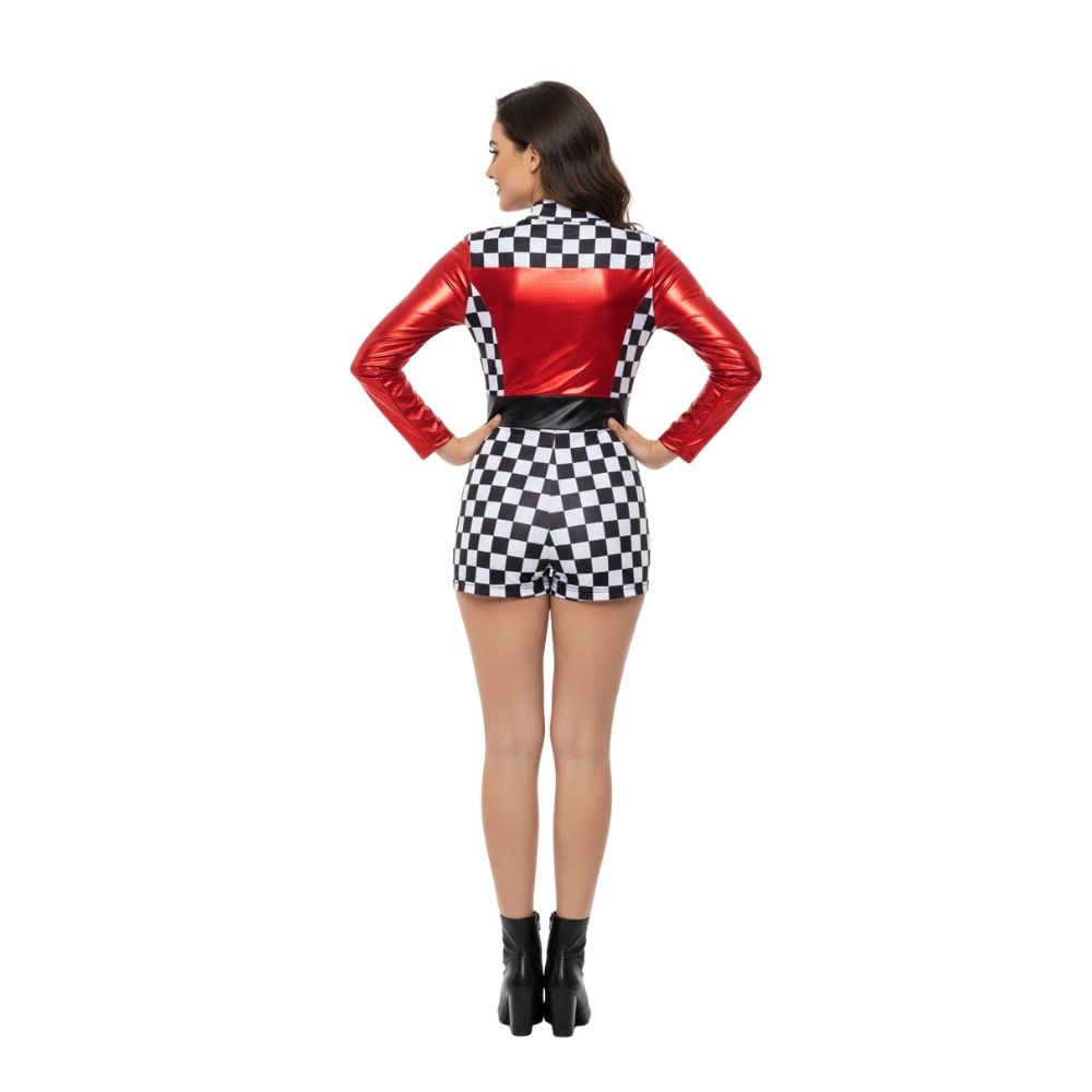 תחפושת נהגת מרוצים מעוצבת לנשים – שחור-אדום / אדום-שחור 🏁🔥