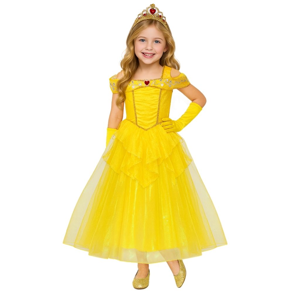 תחפושת נסיכה צהובה לילדות 5-7 שנים / 110-122 ס״מ 👑
