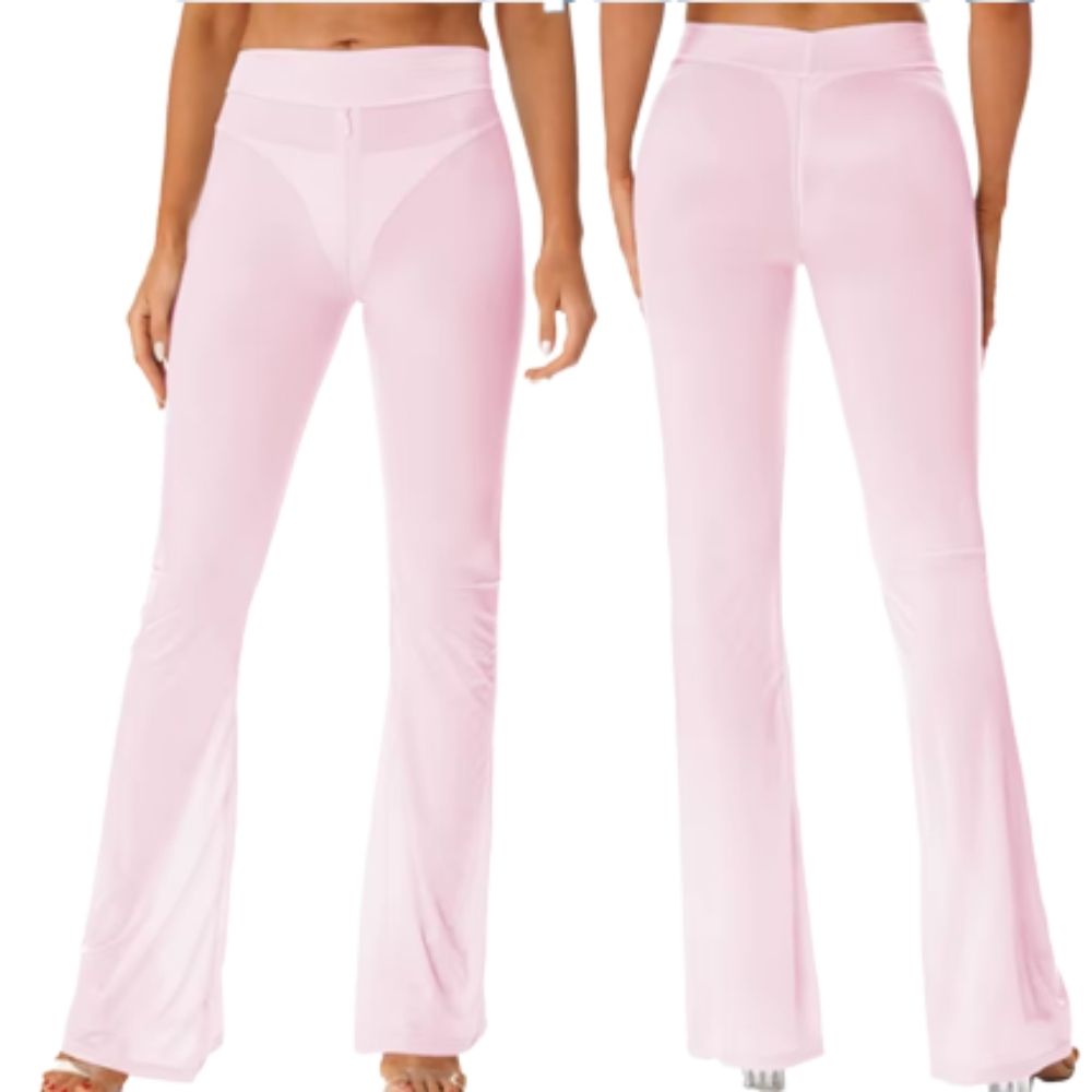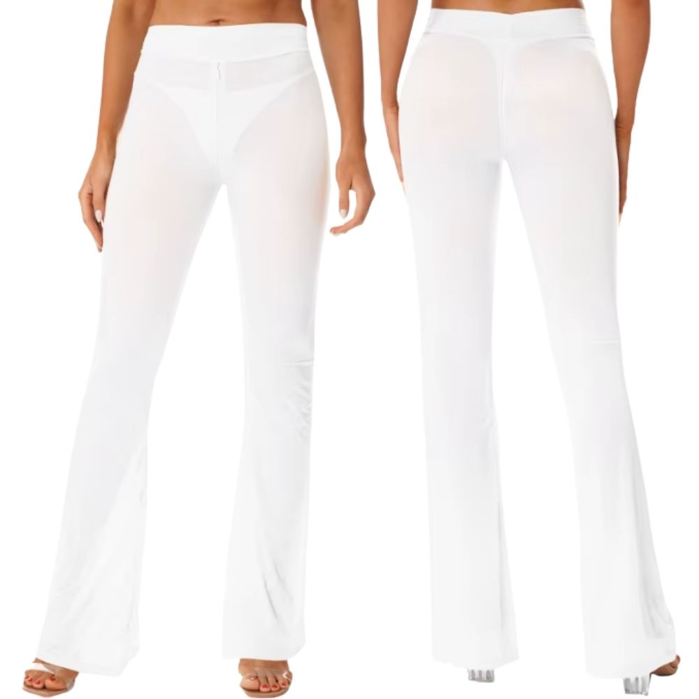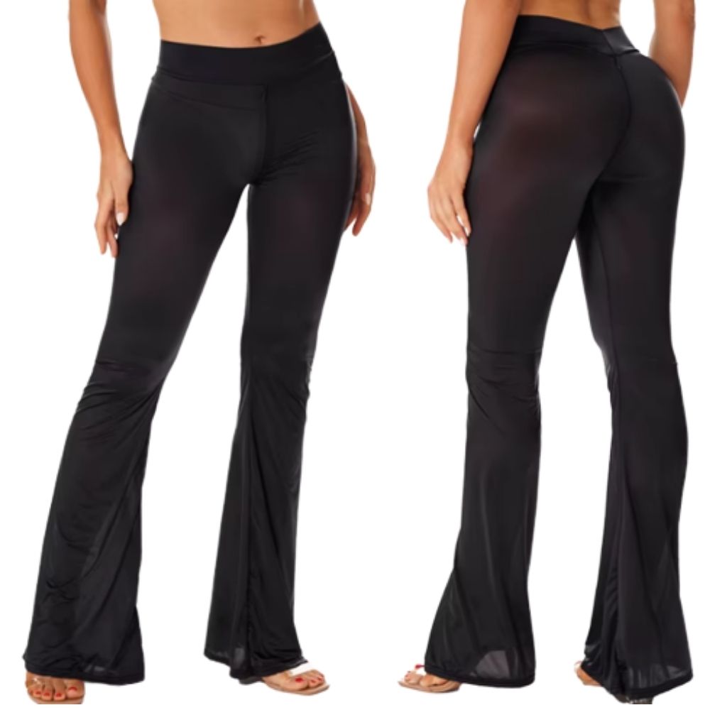 הפריט שיהפוך אותך למלכת הרחבה! מכנסיים מתרחבים בגזרת Flares מחמיאה, עשויים בד לייקרה דק, שקוף למחצה ונעים למגע שזז איתך בכל תנועה.